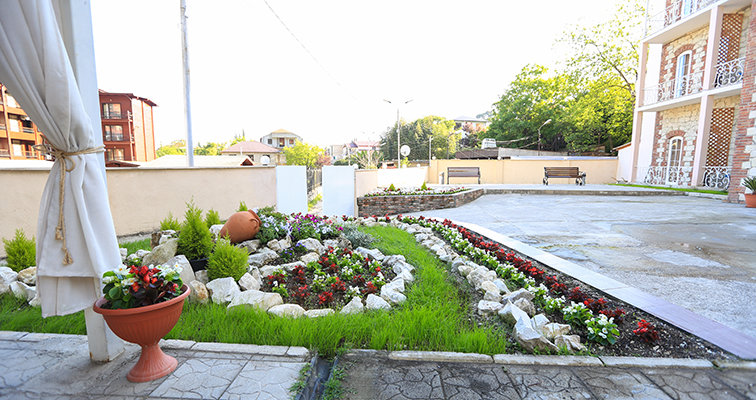 Четырехэтажное современное здание отеля «Никополи» было построено в 2014 году с соблюдением всех современных требований. Закрытую для посторонних территорию украшают зеленые лужайки с альпийскими горками, клумбы, вымощенный плиткой внутренний дворик с летним кафе.