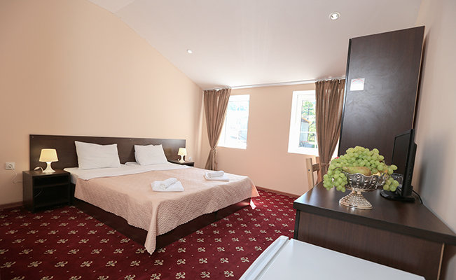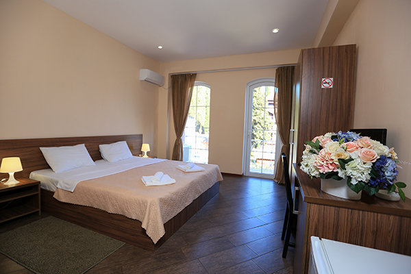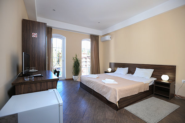 Номерной фонд «Никополи» рассчитан на 80 мест: гостей располагают в «стандартах», «полулюксах» и «люксах» с собственным санузлом с душем, кондиционерами, телевизорами и холодильниками. В распоряжении отдыхающих удобная мебель и полный комфорт.