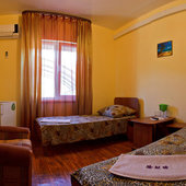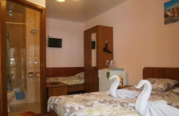 В номерах есть все для комфортного и удобного отдыха – кондиционер (зима - лето), телевизор, холодильник, удобства (душевая кабинка, туалет, раковина), полная меблировка.