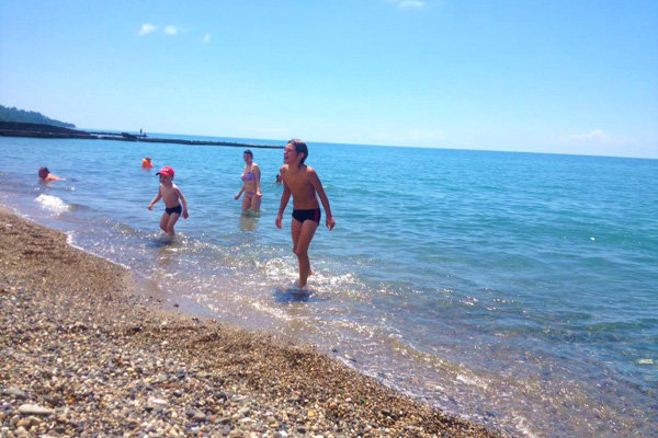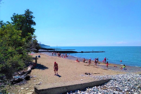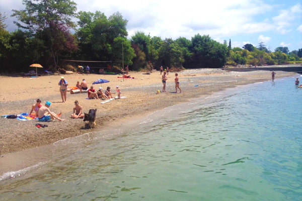 Наслаждаться морем гости могут на поселковом песчано-галечном пляже. Он просторный и малолюдный, поэтому отдыху ничто не помешает.