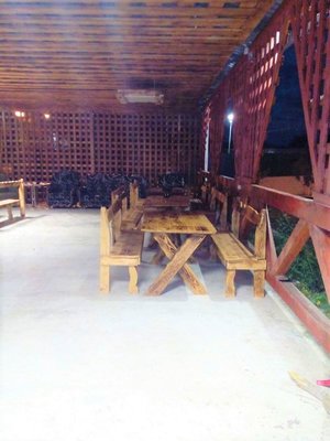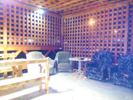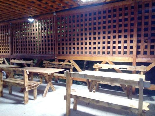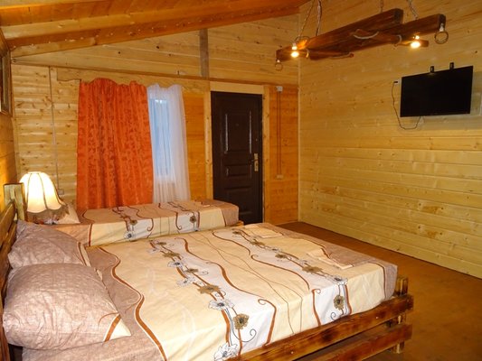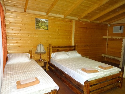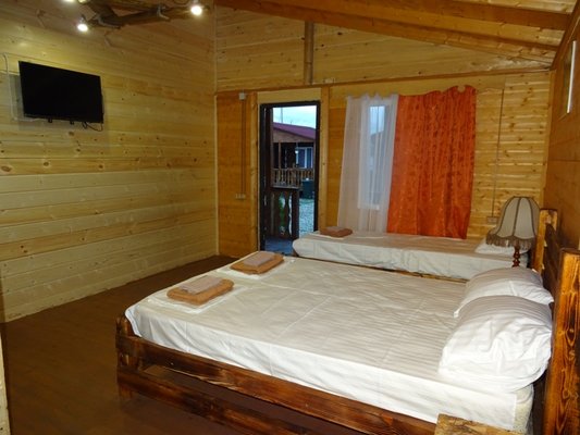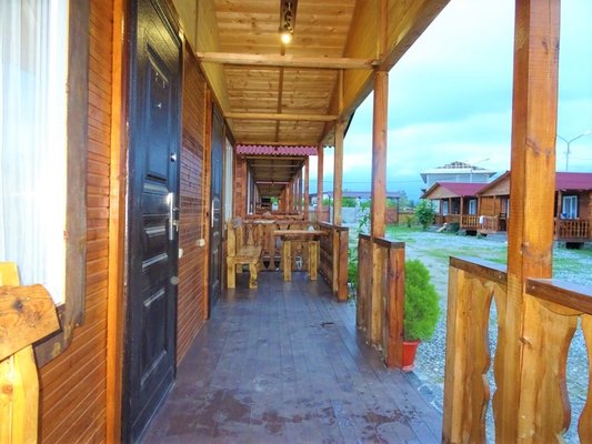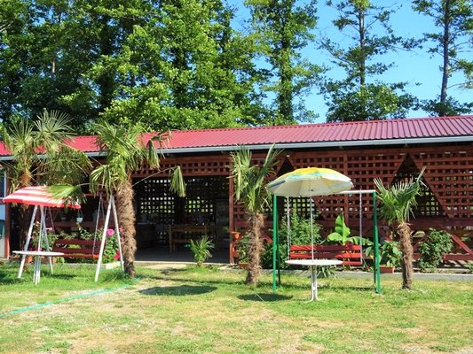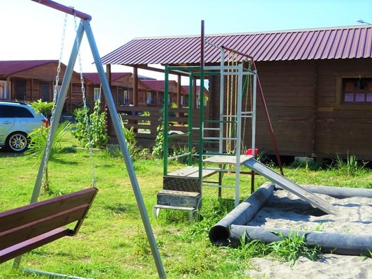 Территория базы отдыха недоступна для посторонних. Здесь много цветов, солнца и зелени. Все гостевые домики построены из экологически чистых материалов. Миниатюрные коттеджи построены на дистанции друг от друга: её достаточно для того, чтобы не было слышно соседей.