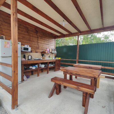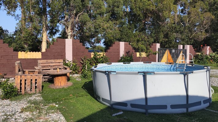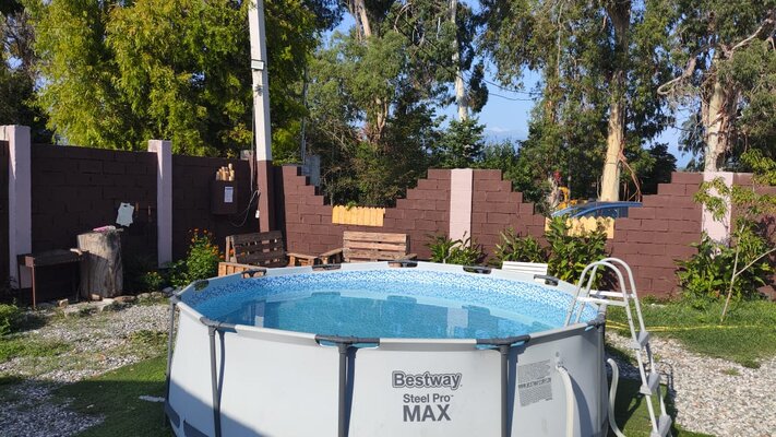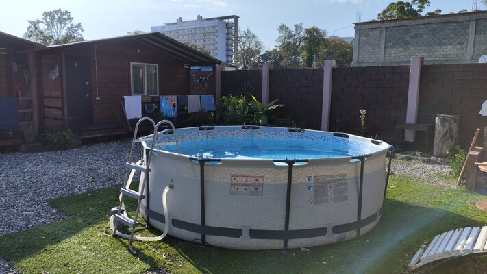 К вашим услугам: каркасный бассейн, бесплатная парковка, летняя кухня с необходимой бытовой техникой и посудой, а также мангал для барбекю.