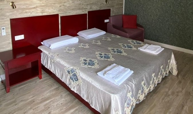 Отель состоит из трехэтажного корпуса в современном стиле, находящегося на небольшой закрытой территории. Гостям доступны уютные двухместные номера разных категорий. В каждом номере есть индивидуальный санузел с душем и кондиционер, а также холодильник, электрочайник, телевизор и Wi-Fi.