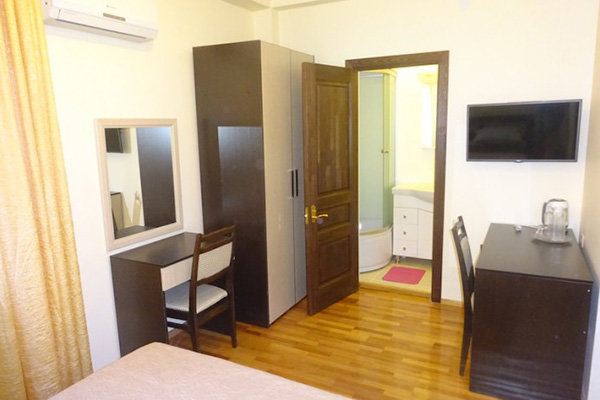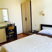 Городской галечный пляж в 200 метрах от гостиницы усыпан галькой. Море здесь чистое и теплое.