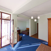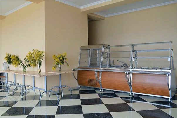 На первом этаже третьего корпуса пансионата «Арбика» расположена небольшая столовая, в которой подают завтраки и обеды. В составе инфраструктуры пансионата – кафе и бар, а еще – магазин продуктов, поэтому дополнительное питание можно организовать самостоятельно.