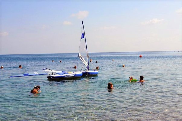 Пляж с морскими развлечениями находится всего в 20 метрах от отеля.
