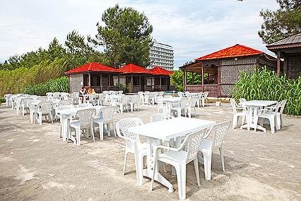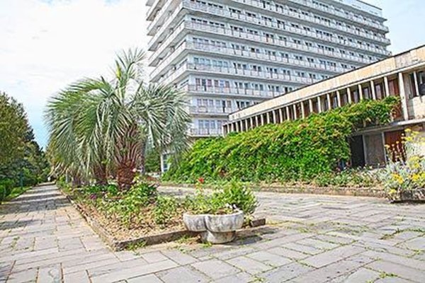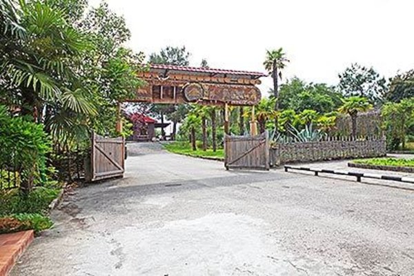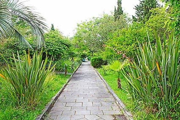 На огромной собственной территории, расположился субтропический парк с тенистыми беседками и экзотическими растениями, в том числе с пицундской сосной и самшитом.