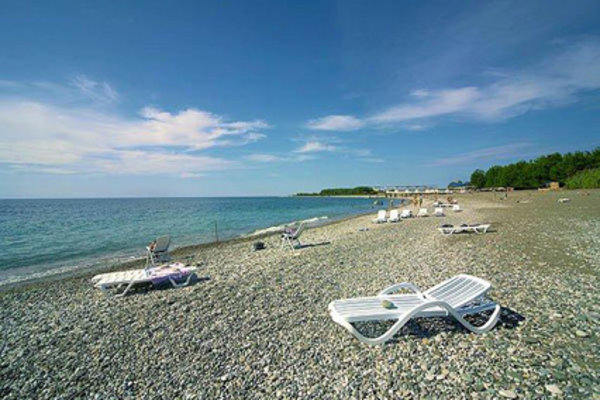 Расположен в нескольких километрах от центра Пицунды, в тихом и спокойном месте. Пицунда – климатический курорт, где Кавказский хребет надежно защищает пляж от сильных ветров.