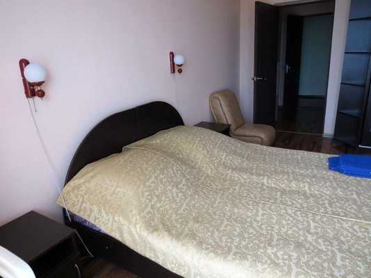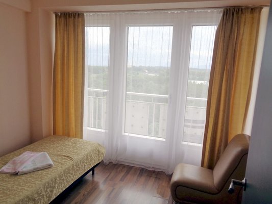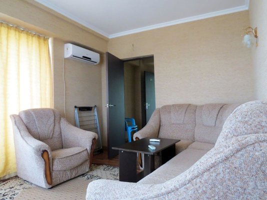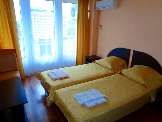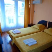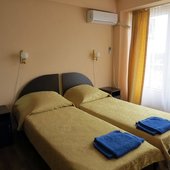 10-этажный корпус находится на самом берегу моря в 50 метрах от собственного песчано-галечного пляжа, оборудованного лежаками, зонтиками, навесами, кабинками для переодевания, душем.