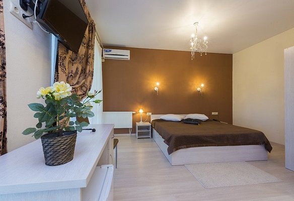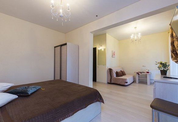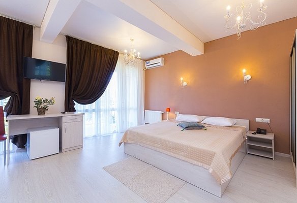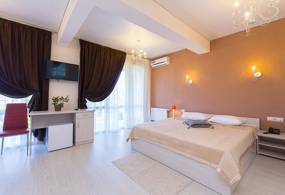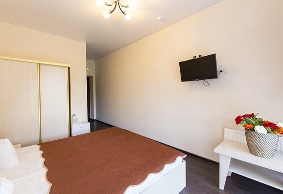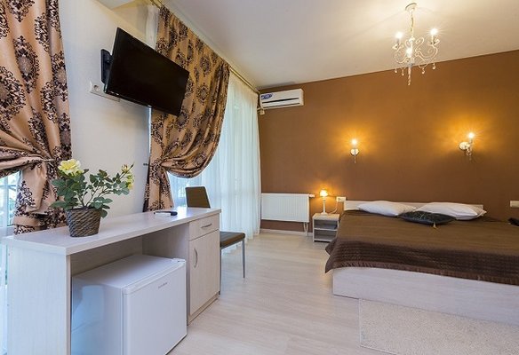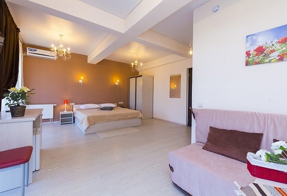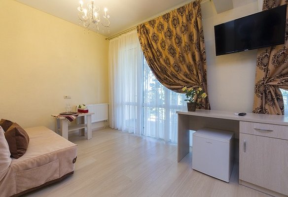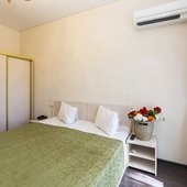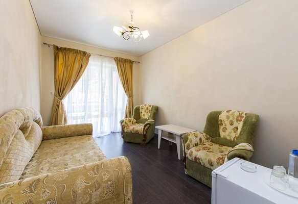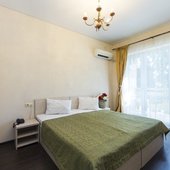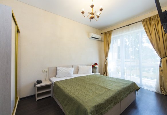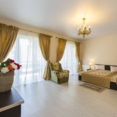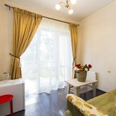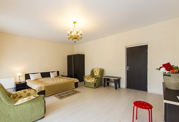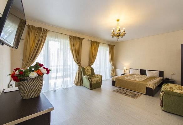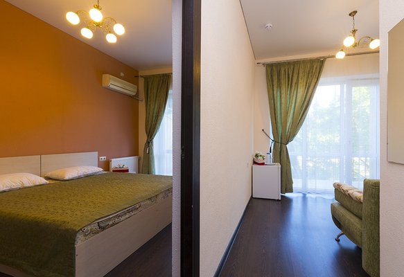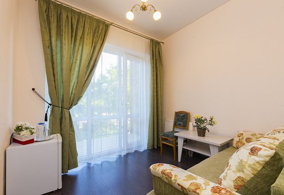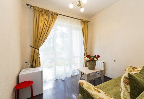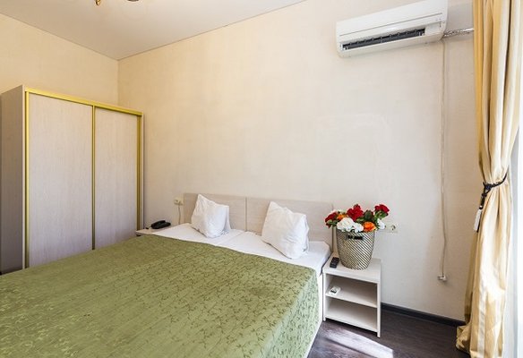 В жилом фонде гостиницы номера категорий «стандарт», «полулюкс» и «люкс». В каждом есть классический набор бытовой техники, комнаты оформлены в спокойных светлых тонах. В распоряжении гостей удобная мебель, ванные комнаты, фен.
