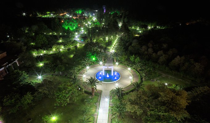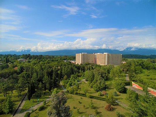 Это место – отличное решение для тех, кто хочет окунуться в чарующую атмосферу Кавказа и отдалиться от суеты больших городов. Вокруг санатория раскинулся шикарный парк, где представлены редкие породы вечнозеленых растений. Гости могут гулять среди лавровых деревьев, сосен и ярких цветочных насаждений.