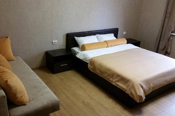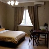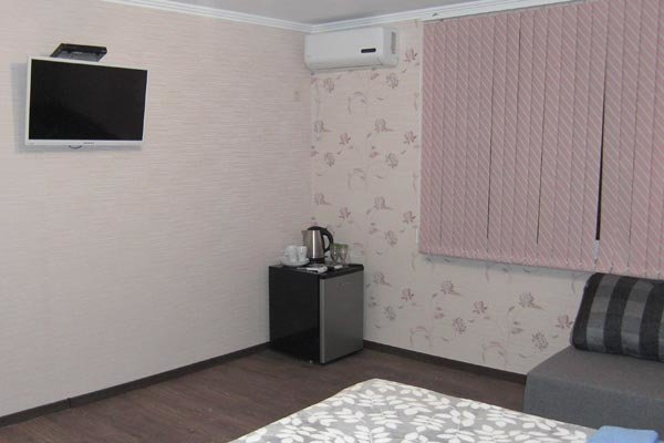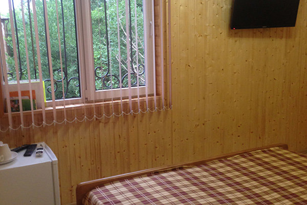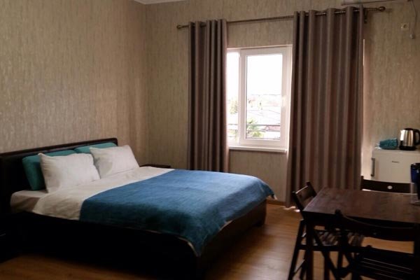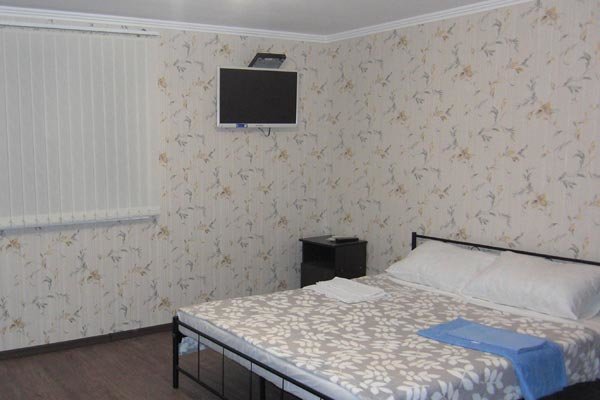 Светлое трехэтажное здание с ажурными балконами построено в 2015 году. На территории, огороженной от посторонних, есть уютный внутренний дворик, много солнца и зелени. В номерах различных категорий есть кондиционеры, телевизоры, холодильники. Одновременно в гостевом доме могут отдыхать до 40 гостей.
