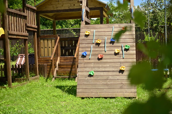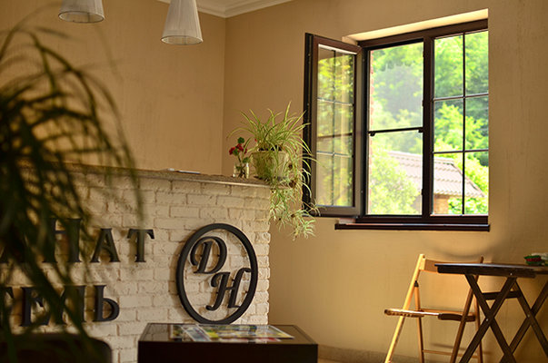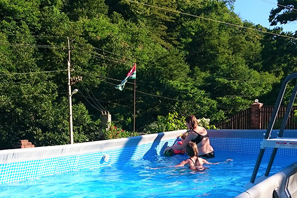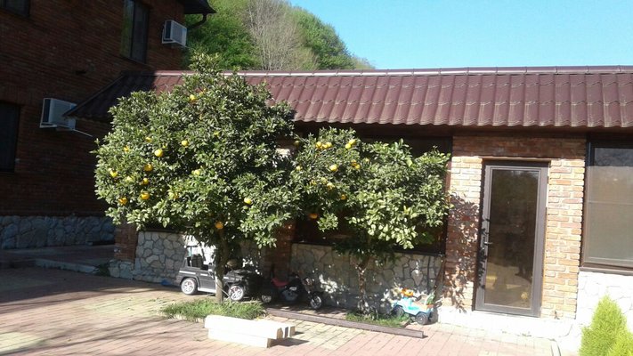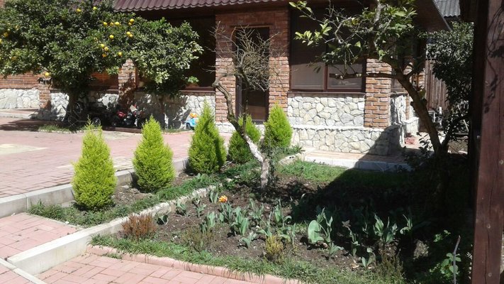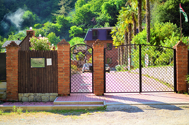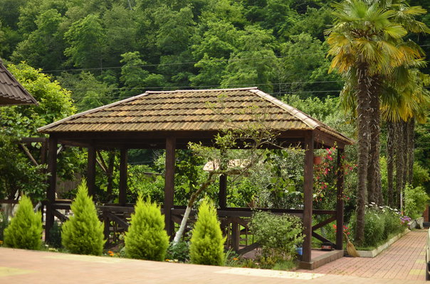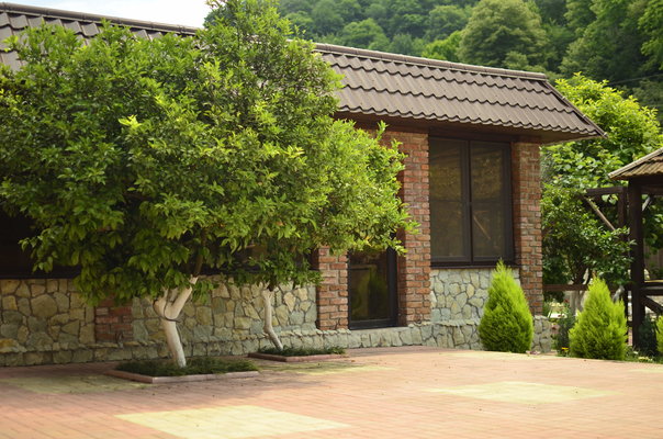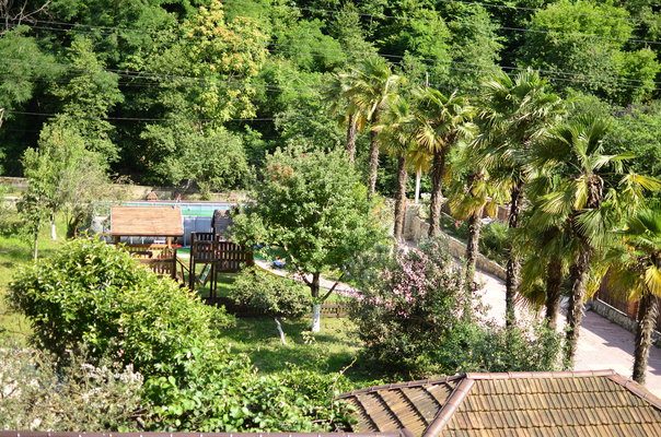 На территории отеля расположено трех этажное здание (21 номер, лобби и рецепция), уютное летнее кафе, с верандой, национальная абхазская апацха, зона с мангалом и тандыром, детская игровая площадка, бассейн, беседка и фруктовый сад с местами для отдыха.