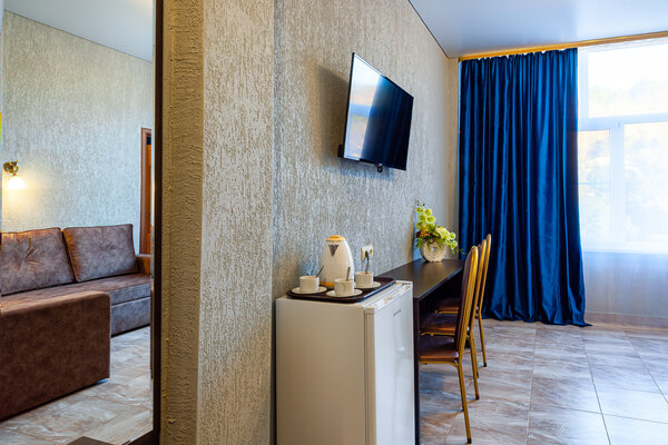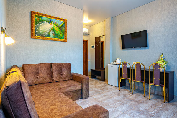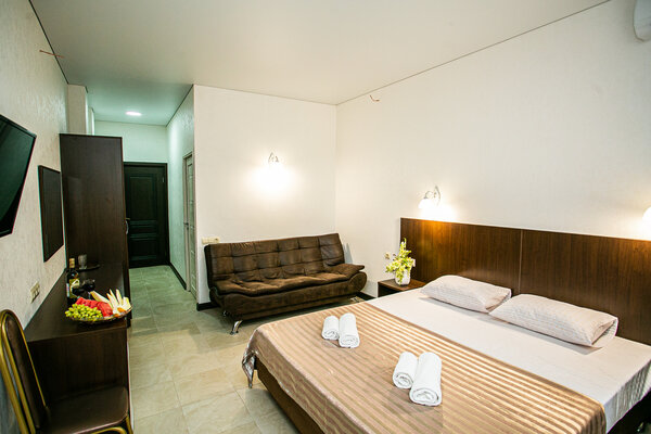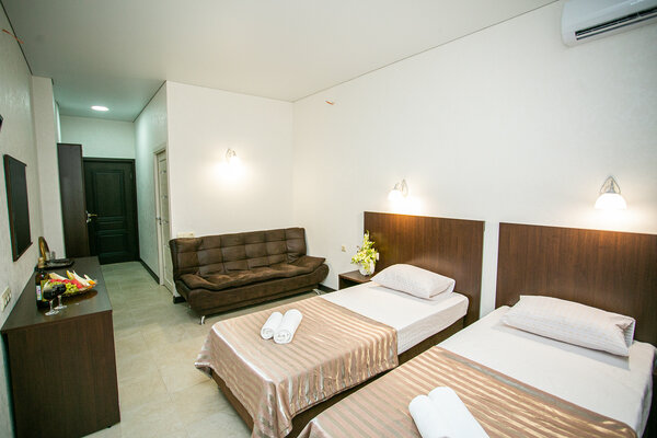 Отель представлен 30 современными и комфортабельными номерами трех категорий: Стандарт, Супериор и Сьют. В каждом номере вы найдете удобные кровати, телевизор, гардероб, мини-холодильник, санузел с душем и необходимую косметику. Кондиционеры «зима-лето» обеспечивают комфорт в любое время года. Дополнительные диваны-кровати позволяют разместить большие семьи или дружные компании.