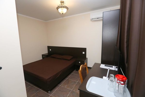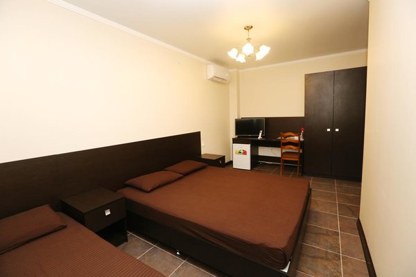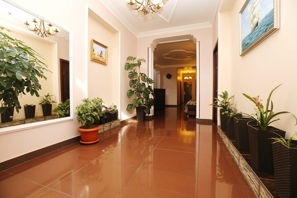 Трехэтажный отель отличается изяществом интерьеров – как в номерах, так и в общественных зонах. Витая лестница с узорами перил, колонны, изысканный дизайн напоминают времена Древней Греции и соответствуют названию отеля. Светлые просторные номера обставлены современной мебелью и бытовой техникой: гости пользуются кондиционерами, телевизорами и холодильниками, санузлами с душем или ванной.
