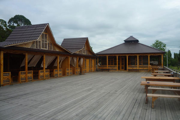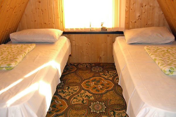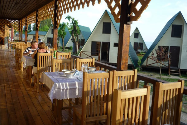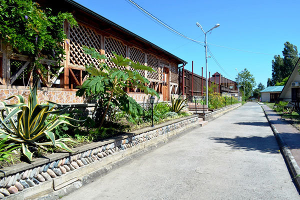 Территория гостиницы располагается в зеленой парковой зоне, среди субтропических деревьев и цветов. Здесь разместились 64 семейных коттеджа в два этажа с балконами. Каждый из коттеджей имеет отдельный вход, собственный санузел с душем и оснащен необходимой бытовой техникой: кондиционером, холодильником, телевизором.