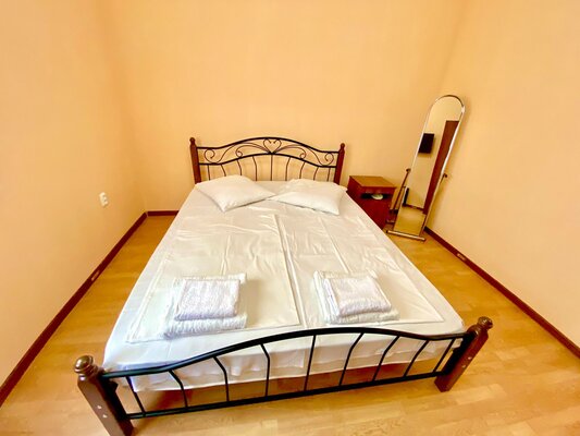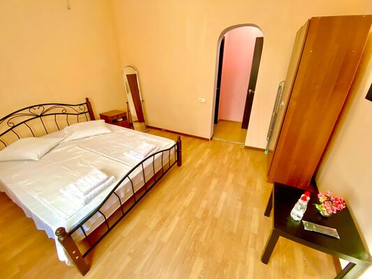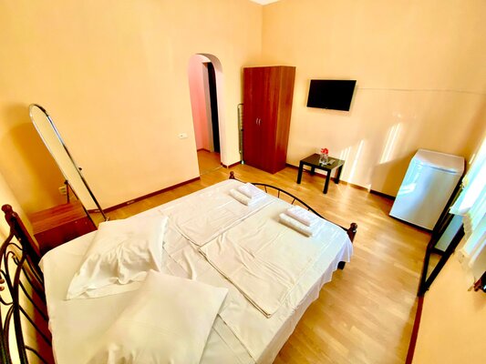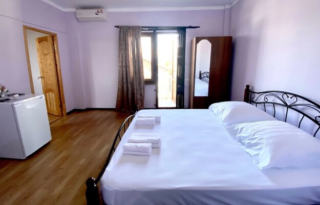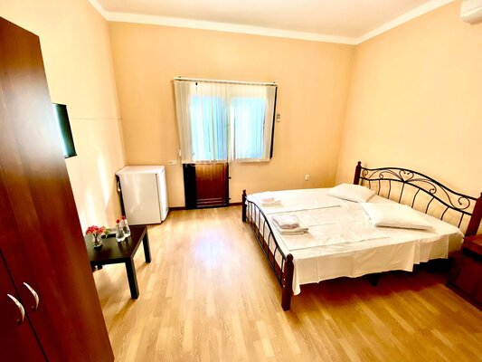 В трехэтажном здании (без лифта) располагаются 14 номеров, рассчитанных на 2-3 человека. Каждый номер оборудован балконом, удобной мебелью и необходимой техникой: кондиционером, телевизором, холодильником. В индивидуальном санузле вас ждут душ, фен и набор туалетных принадлежностей.