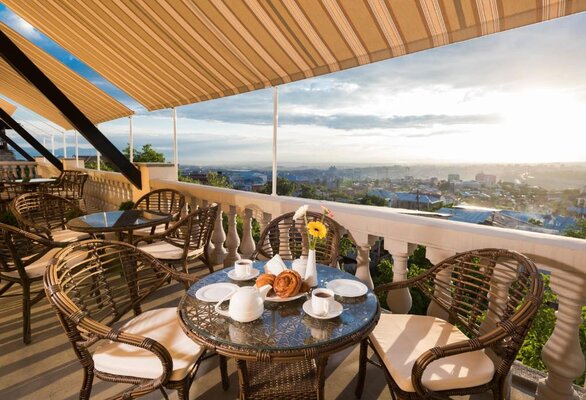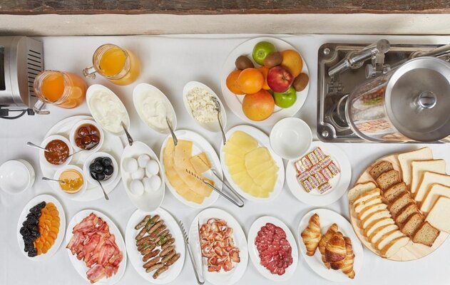 Полный комплексный завтрак - шведский стол подается в ресторане и на террасе. Все виды горячих и холодных блюд: ветчина, бекон, колбаса, хлопья, армянские джемы, мармелад и мед, свежие фрукты, различные виды хлеба, венская выпечка (круассаны, булочки), соки, кофе, чай или горячий шоколад.