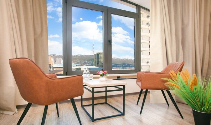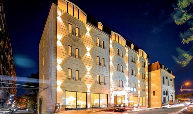 Поездом до ж/д вокзала г. Ереван, далее на маршрутке №68 до остановки «Кинотеатр Россия», далее пройти 560 м до отеля.