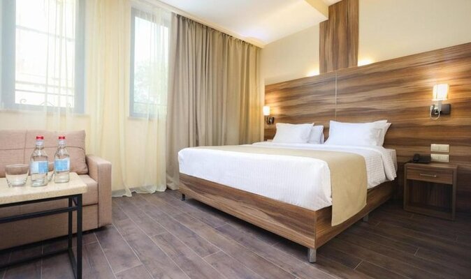 Самолетом до аэропорта г. Ереван, далее на маршрутке №203 до остановки «Коньячный завод Арарат», далее на автобусе №99 до остановки «Луна Парк», далее пройти пешком 450 м до отеля.