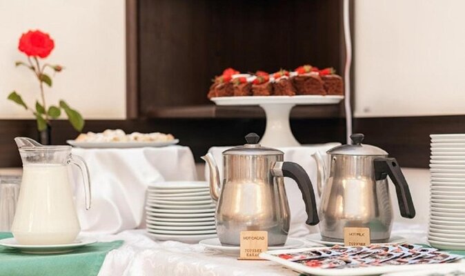 В стоимость проживания включен завтрак. Обед и ужин можно заказать в городских ресторанах или в самом отеле.