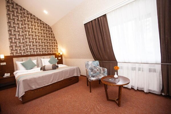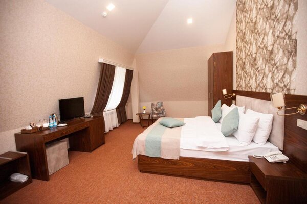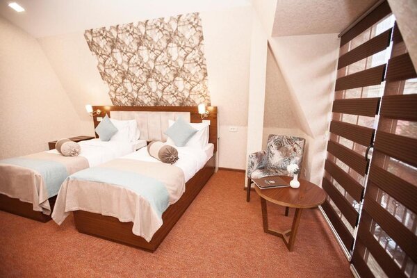 В четырехэтажном здании отеля вас ждут 25 уютных номеров категории «Стандарт». Каждый номер оборудован индивидуальным санузлом, французским балконом, кондиционером и необходимой техникой. Современный лаконичный интерьер в приятных пастельных тонах создает атмосферу комфорта и уюта.