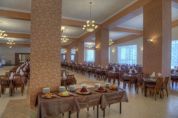 Уютная столовая, эстетически оформленные блюда с разнообразием и богатством азербайджанской национальной и европейской кухни к Вашим услугам.