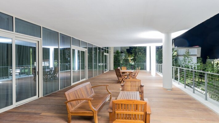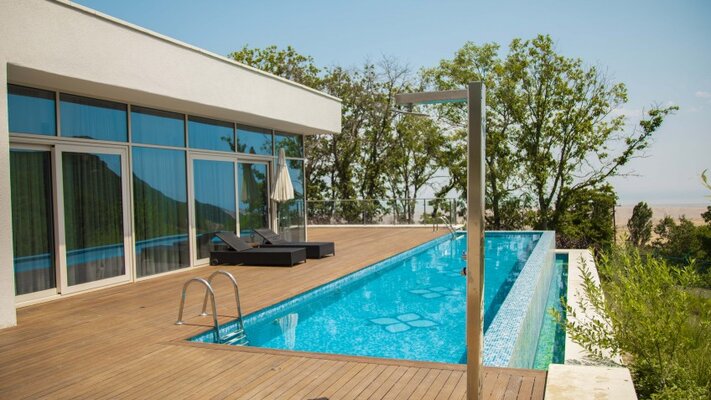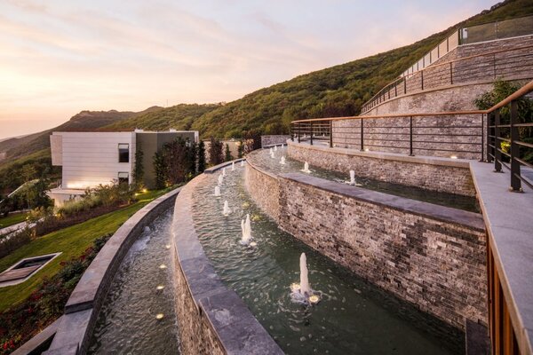 Отель раскинулся на благоустроенной территории, окруженной горами и лесом, под величественной скалой. Архитектура впечатляет: современный многоэтажный корпус гармонично дополняют три стильные виллы, а отдельный спа-комплекс с поликлиникой и фитнес-центром предлагает все необходимое для полноценного отдыха и оздоровления.