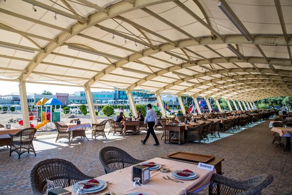 В зависимости от погоды можем организовать деловые обеды, а также кофе и закуски на террасе, с которой открывается один из самых красивых видов на Каспийское море.