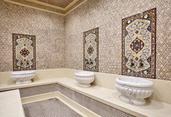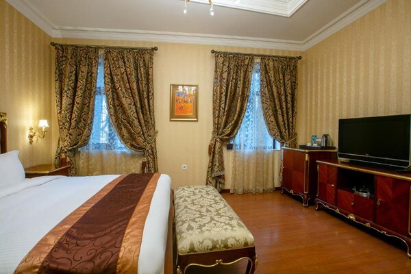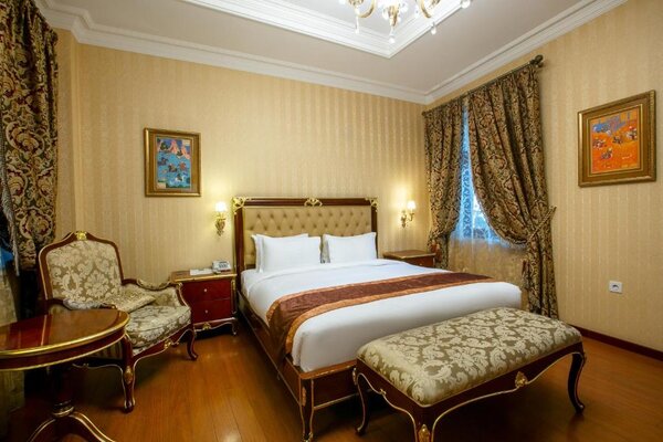 Отель представлен четырехэтажным корпусом, лаконичный снаружи, внутри напоминает сказочный дворец. Интерьеры, украшенные натуральным резным деревом, камнем и мрамором, погружают гостей в атмосферу настоящего Старого Баку.
