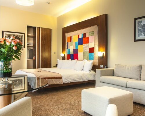 Просторные номера с окнами от пола до потолка наполнены естественным светом и открывают захватывающие панорамные виды на ночной Баку. Каждый номер оформлен в теплых земляных тонах, дополнен произведениями современного искусства азербайджанских художников и оборудован всем необходимым для комфортного пребывания: бесплатный высокоскоростной интернет и Wi-Fi, телевизор с плоским экраном, DVD-плеер, электронный сейф и бесплатные местные телефонные звонки. Просторные ванные комнаты порадуют вас японским туалетом, тропическим душем и глубокой ванной.