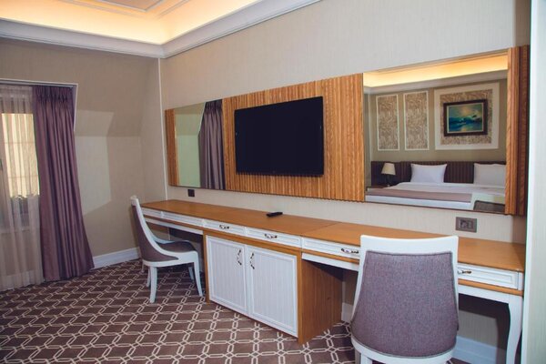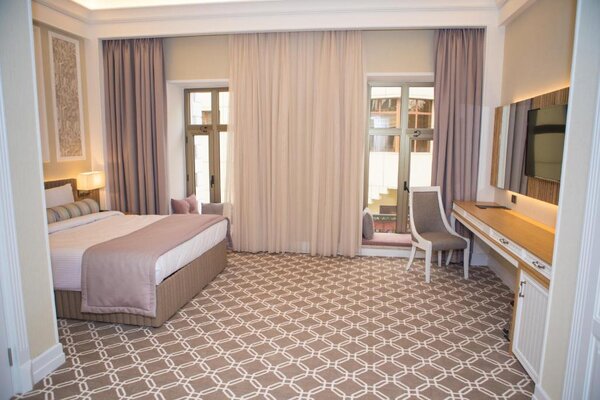 Отель, расположенный рядом с академическим театром имени Самеда Вургуна, представляет собой трехэтажное здание с красивыми интерьерами, включая сводчатые потолки и мраморные полы. Гости могут выбрать номера различных категорий комфорта, от бюджетных без окна до номеров повышенного комфорта. Во всех номерах предоставлены собственные ванные комнаты, кондиционеры, плазменные телевизоры и Wi-Fi.