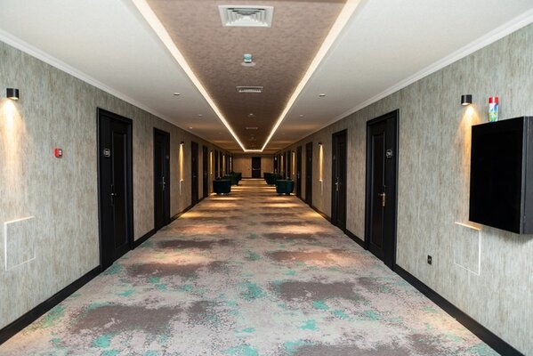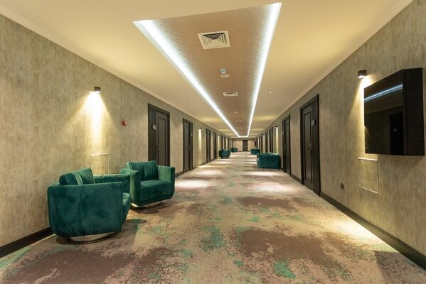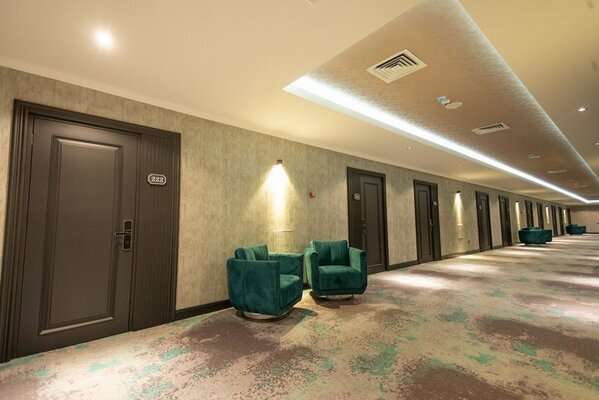 Оснащенный повышенным комфортом и по последнему слову техники, зал отеля является идеальным местом для проведения успешных встреч, совещаний, семинаров, конференций. Конференц-зал вмещает до 50 человек. Зал площадью 120 кв.м. расположен на 4 этаже нашего отеля.
