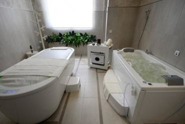 К Вашим услугам 20 комфортных процедурных комнат, хамам, сауна, кедровая бочка, криосауна, ингаляторий, солевая комната, зона отдыха парикмахерская, косметология и многое другое