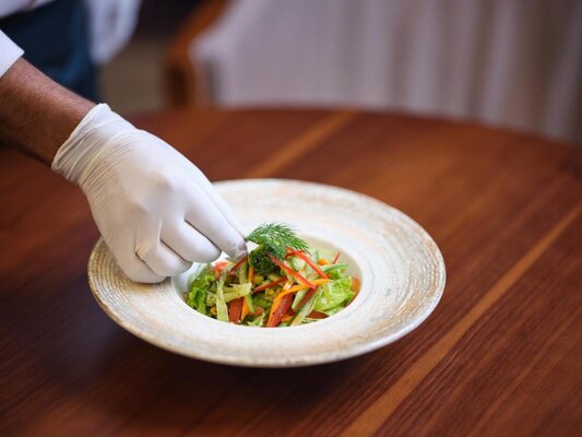 Независимо от того, прошли ли вы холистическое аюрведическое лечение, зарядились энергией занятия йогой или просто расслабились у бассейна, кафе «Aura» предлагает вам разнообразные вкусные блюда, горячие и холодные полезные закуски, детоксицирующие напитки и травяной чай, чтобы наполнить ваш день.