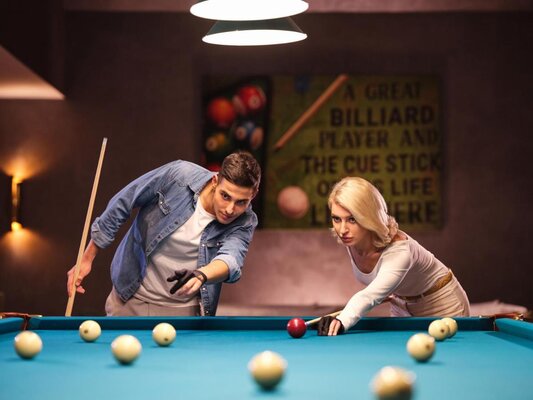 Бильярдный бар приглашает вас сразиться с партнером в бильярд, наслаждаясь бокалом фирменного коктейля или мартини.