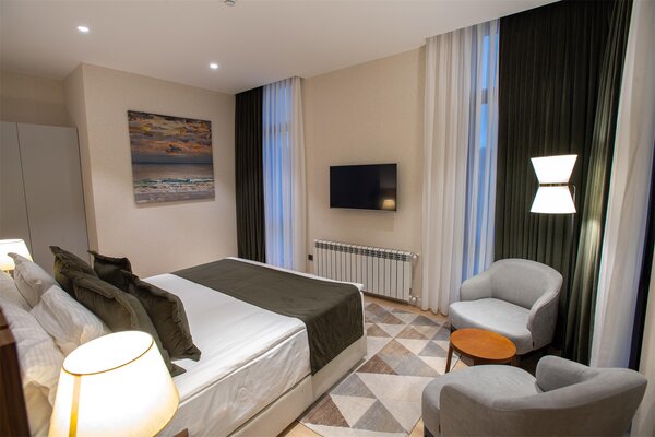 «Расслабьтесь и получайте удовольствие с бокалом любимого напитка и сигарой после насыщенного дня. Лаундж-бар «Badə» предлагает широкий выбор коктейлей и напитков в стильной атмосфере.