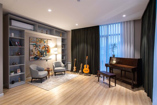 Независимо от того, путешествуете ли вы с семьей и друзьями или планируете провести небольшую корпоративную презентацию для своих коллег или партнеров, этот уютный зал прекрасно подойдет для любой цели вашего собрания. Просто возьмите свои любимые закуски и напитки и наслаждайтесь любимым фильмом или презентацией.