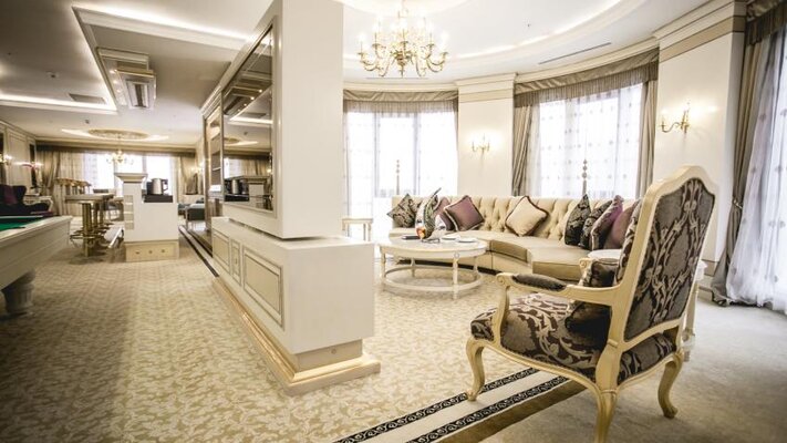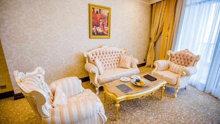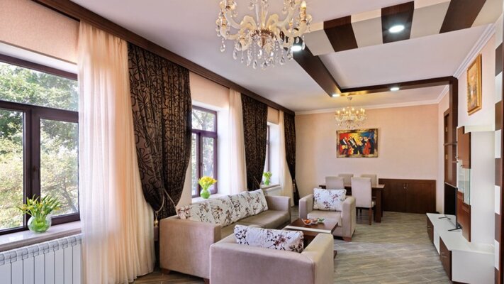 Расположенный в самом сердце Азербайджана, у подножия величественных гор Большого Кавказа, Shamakhi Palace Sharadil предлагает вам незабываемый отдых в окружении нетронутой природы. Всего в 16 километрах от исторического города Шамахи, курорт дарит вам возможность насладиться тишиной и красотой горных пейзажей.