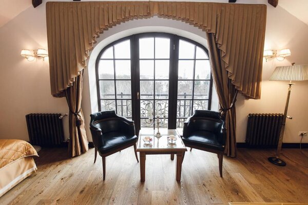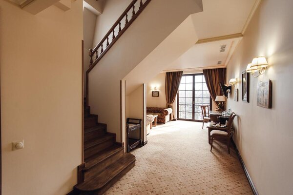 В «Эрмитаже» вас ждет широкий выбор номеров, от стандартных до просторных двухуровневых апартаментов с сауной.
