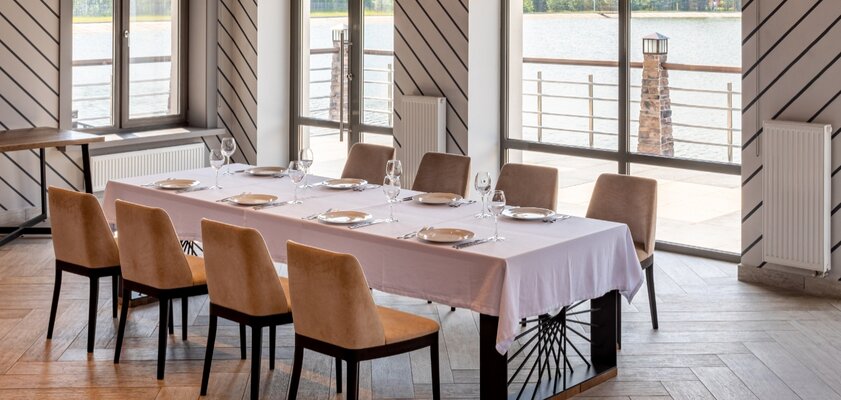 К Вашим услугам на территории Парк-отеля расположился ресторан белорусской и европейской кухни. Благодаря внимательному и чуткому персоналу, стильному и современному интерьерному решению, приятной и расслабляющей атмосфере вы избавитесь от всех хлопот, связанных с организацией и проведением вашего мероприятия, воплощая в реальность все пожелания.