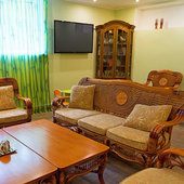 Комфортный отдых начинается с размещения в гостевом корпусе или в основном четырехэтажном корпусе. Уютные номера оснащены современной мебелью, белоснежной постелью, в каждом номере имеется плазменный телевизор со спутниковыми каналами, санузел с душем.