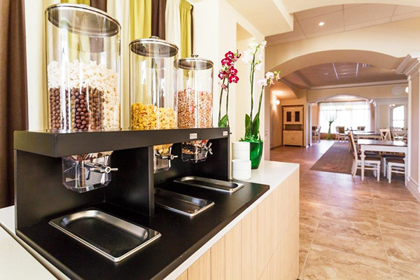 Основной ресторан — в корпусе; кухня: европейская; время работы: с 08-30 до 10-00 (завтрак); с 13-30 до 15-00 (обед); с 18-30 до 20-00 (ужин)