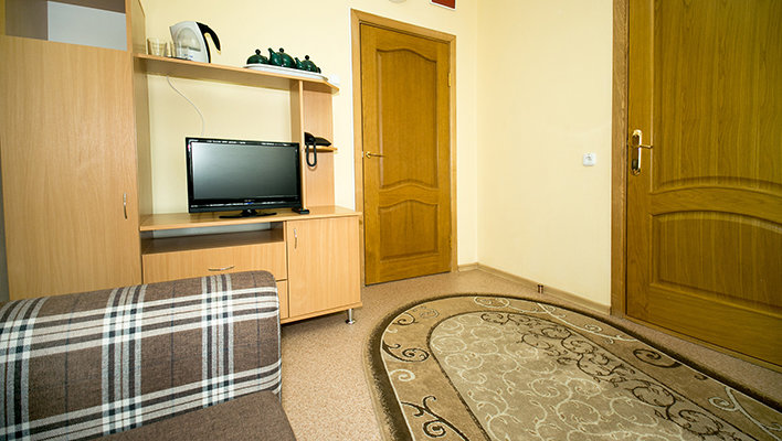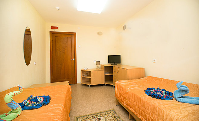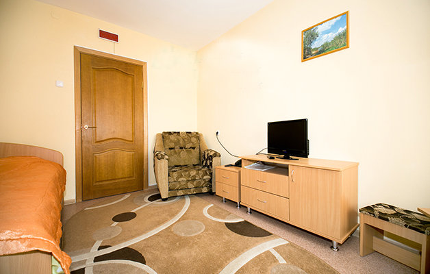 В санатории организовано комфортное проживание со всеми удобствами в 2-местных 1-комнатных номерах, в комнате есть телевизор и холодильник. Имеются номера и повышенной комфортности.