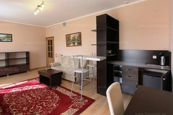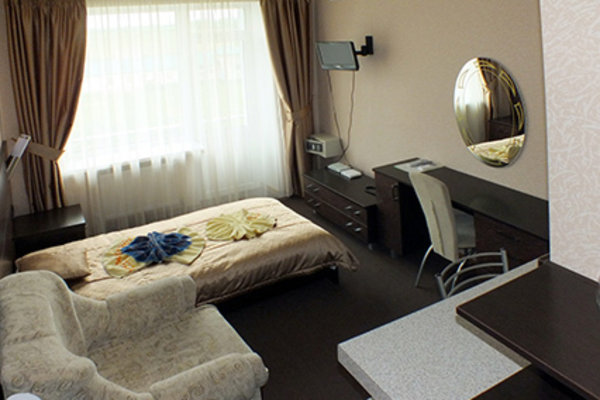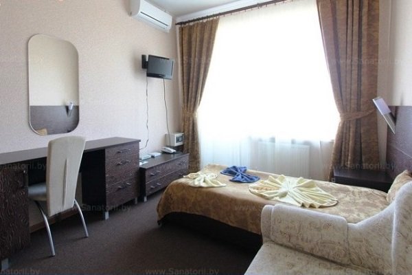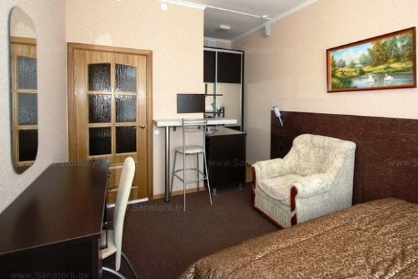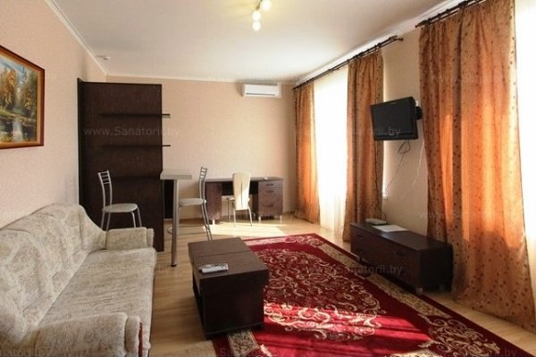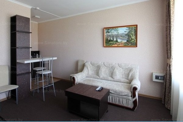 Мощность санатория – 66 мест. Отдыхающих ждет проживание в номерах, расположенных в главном корпусе и характеризующихся повышенной комфортностью. В каждом номере установлен телевизор (подключено интерактивное телевидение – 30 программ), холодильник, сейф, внутренняя телефонная связь. В номерах «Люкс» и «Апартаменты» установлены кондиционеры, оборудованы мини-кухни. В санатории отдыхающие могут воспользоваться услугами беспроводного высокоскоростного интернета «Wi-Fi». В главном корпусе функционирует столовая, где организовано 5-ти разовое питание по заказному меню в одну смену, внедрены элементы шведского стола (ежедневный отпуск салатов и овощей), работает буфет.
