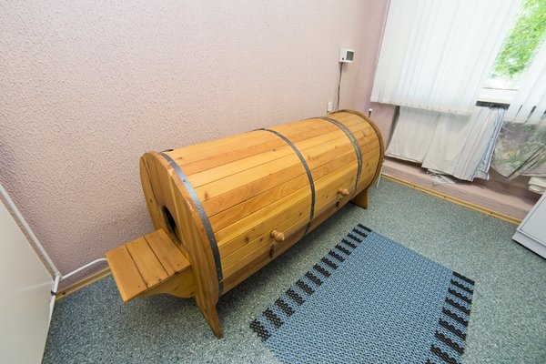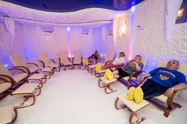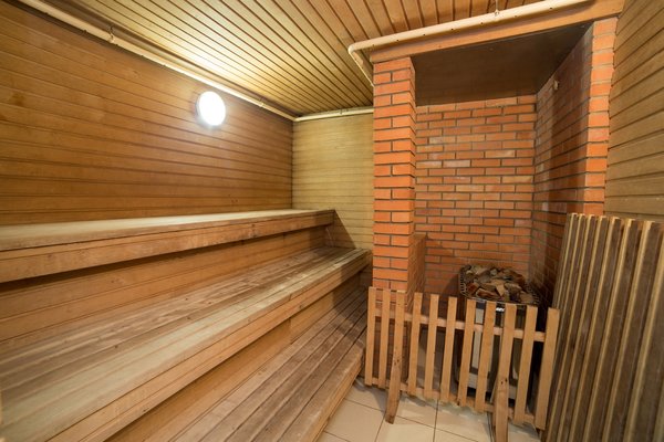 Крытый бассейн из источников с минеральной водой (с гидромассажными устройствами и элементами аквапарка). Сауны: русская и финская.