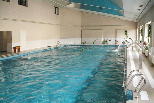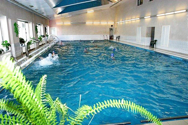 крытый — 200 м2, 8х25 имеются гейзеры, каскады, подводный массаж, аквааэробика