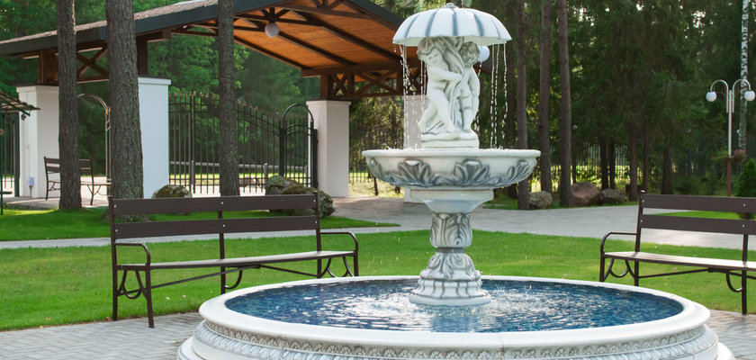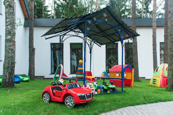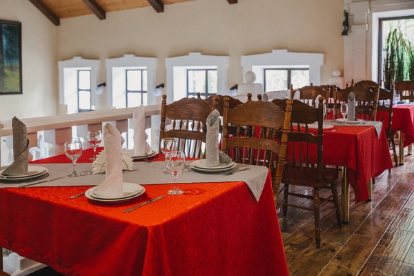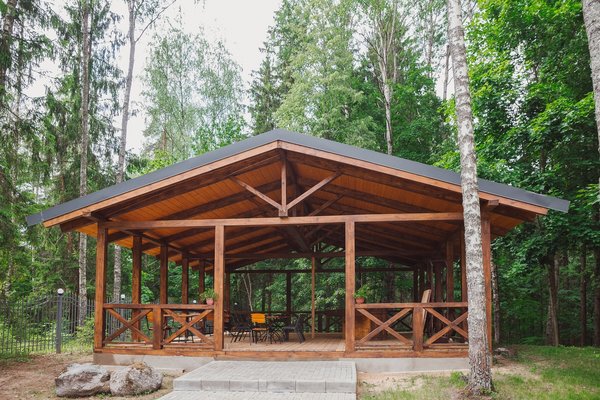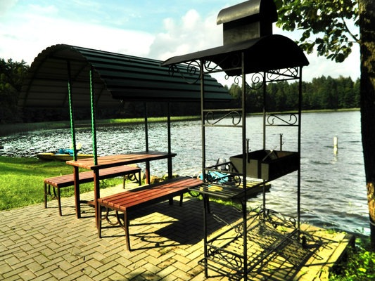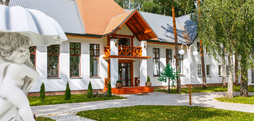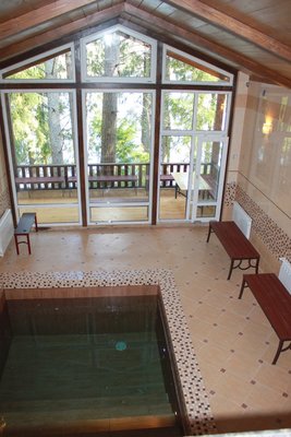 На территории дома отдыха есть детская игровая площадка, фонтан, мини-тренажерный зал, кафе-бар, русский бильярд, крытый бассейн с подогревом, финская сауна, русская баня с купелью родниковой воды. Зона для барбекю: беседки с мангалом, крытый шатер на берегу озера, деревянная летняя веранда.