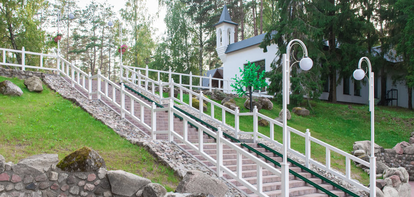 Благоустроенная набережная с собственным пляжем, маршрут для пеших и велосипедных прогулок летом и лыжных – зимой, организован прокат катамаранов и прочего спортивного инвентаря. Возможность организации конных прогулок за территорией дома отдыха.