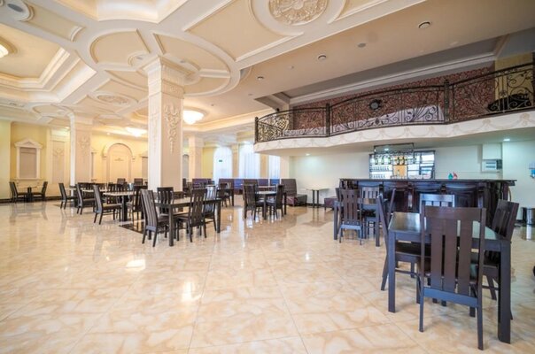 В отеле есть просторный ресторан (300 кв.м) с питанием по системе «Шведский стол», где гости могут насладиться вкусной едой и особенно вкусными кондитерскими изделиями собственного производства.